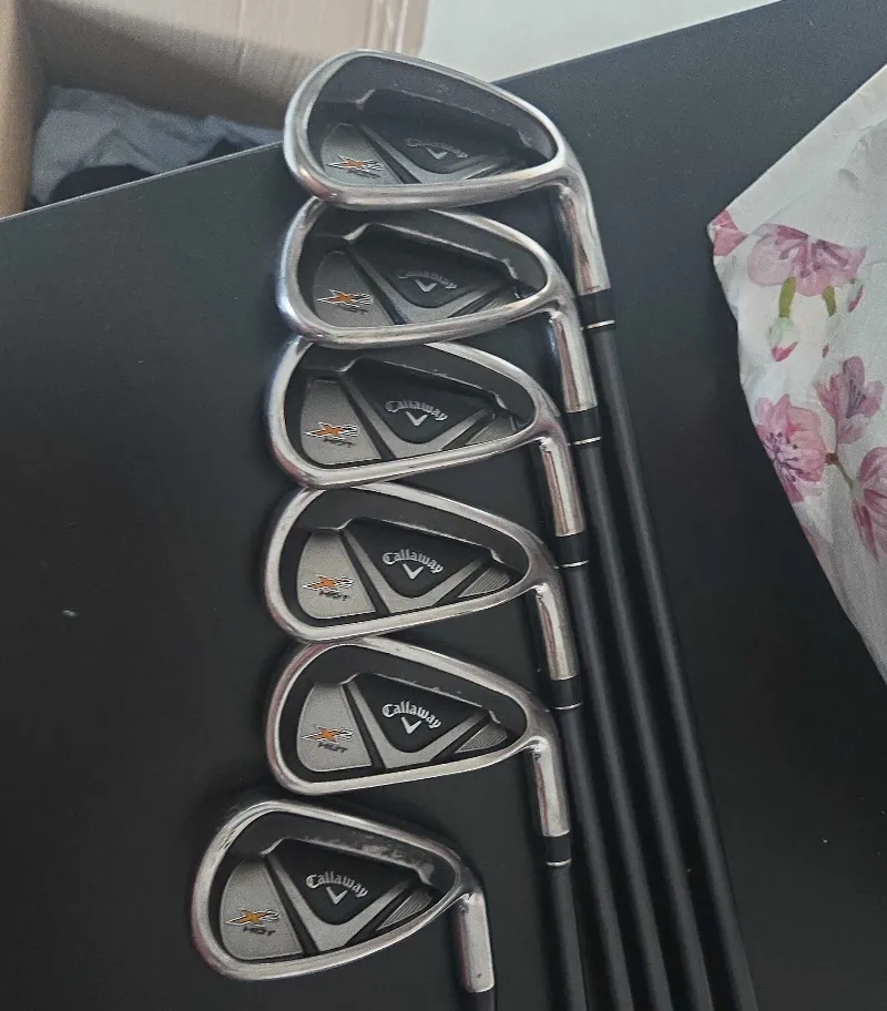 Hjälper min vän att Säljer ett järnset från Callaway, modellen är X Hot. 5-pw Perfekt för golfaren som söker ett förlåtande och lättspelat set. Klubborna är Reguler Flex och orginal greppen sitter på! Klubborna är i bra skick dock så har pitchen fått sig ett stenskott men absolut ingeting som påverkar själva klubban. Klubborna har tagit honom ifrån 54-14 i Hcp klubborna passar Herr som dam samt äldre junior som inte riktigt är redo för stål skaft än..