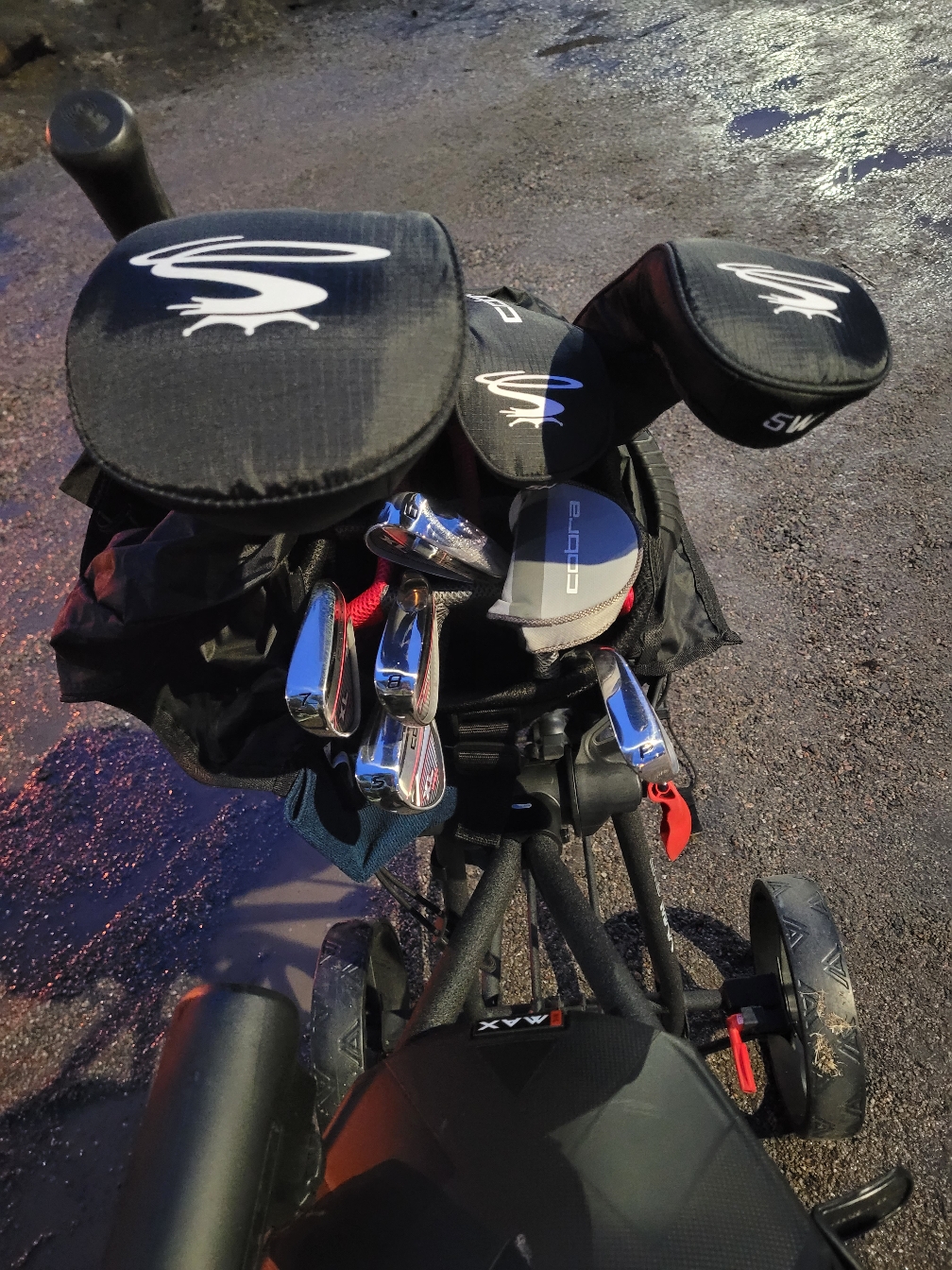 Cobra golfset dam inkl bigmax autofold vagn, mugg- och paraplyhållare i nyskick säljes. Endast använd 3ggr på ranchen.