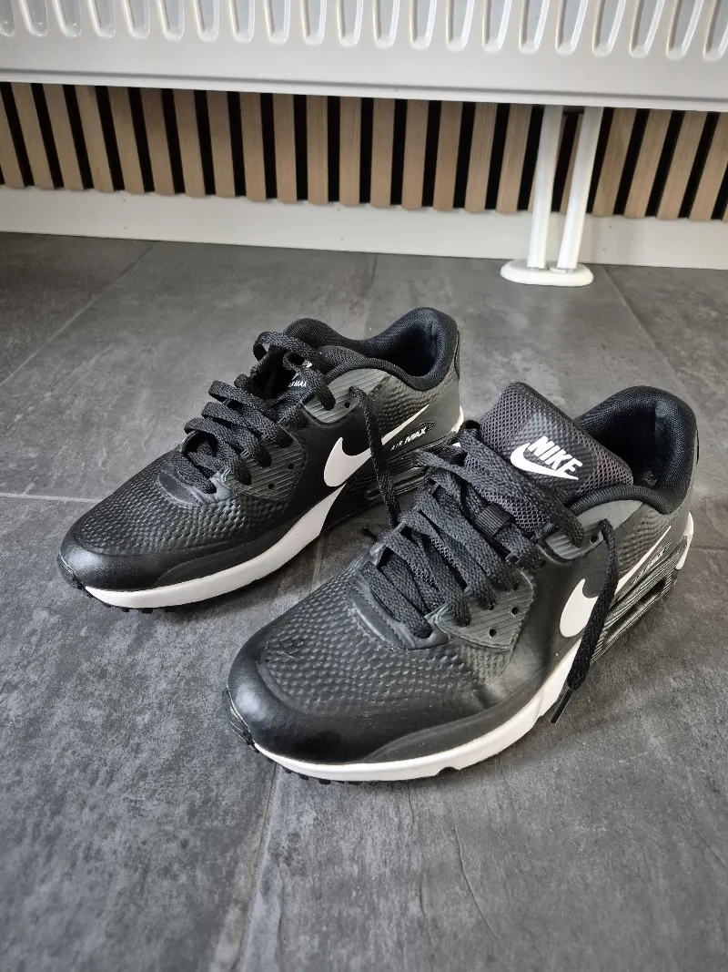 Säljer ett par svarta Nike Air Max golfskor i storlek 42,5. Använda ett fåtal gånger så i väldigt fint skick. Skorna är vattentäta.