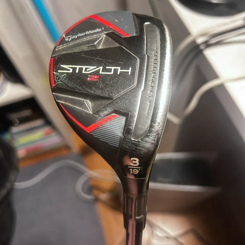 TaylorMade Stealth 2 hybridklubba, modell 3 med 19 graders loft. Klubban är använd och har märken från normalt spel, främst på klubbhuvudet och träffytan. Skaftet är ett Fujikura Ventus TR HB 7S, vilket är ett styvt skaft för hybrid. Greppet är i gott skick och headcover från Stealth-serien medföljer. Klubban passar golfare som söker en högpresterande hybrid med tour-inspirerat skaft.