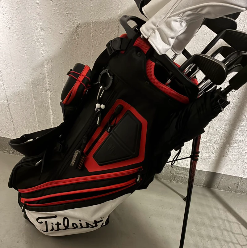 Titleist bag i bra skick säljes, saknas tyvärr regnskydd men medföljer en Callaway huva inköpt iår! 14 fack för klubbor och generösa fack för allt du behöver ha med på rundan
